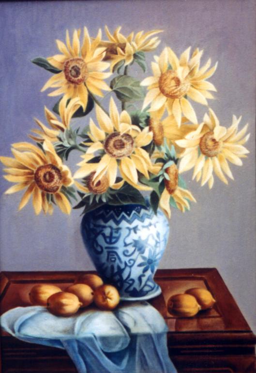 油画窗前静物纪念抗日战争胜利60周年书画作品2005
