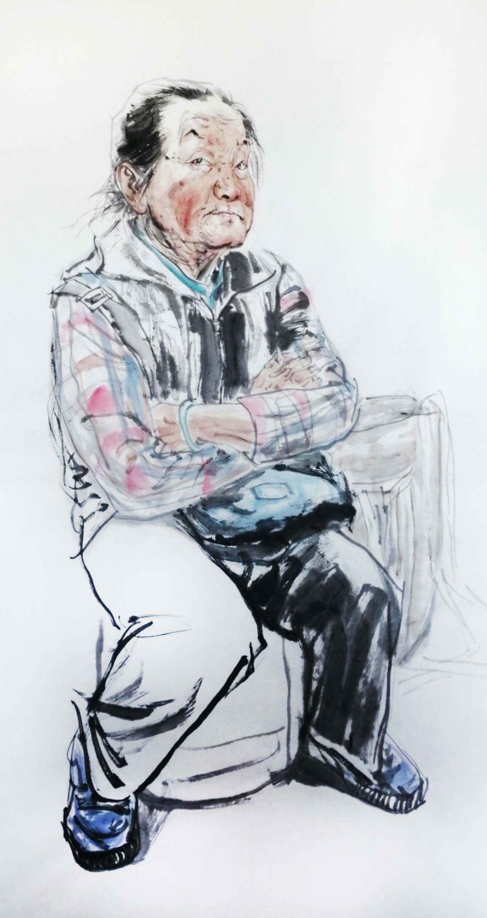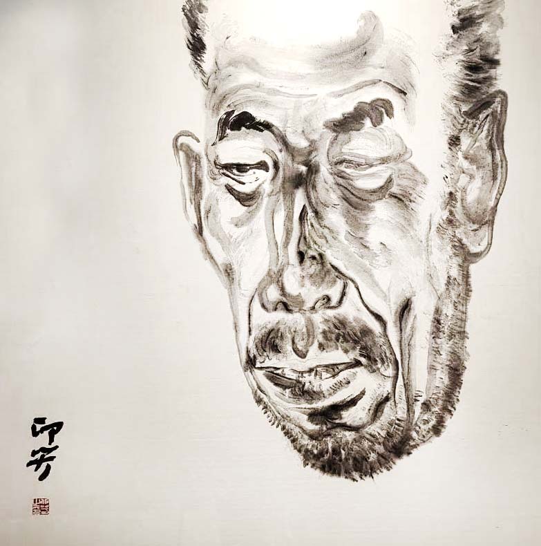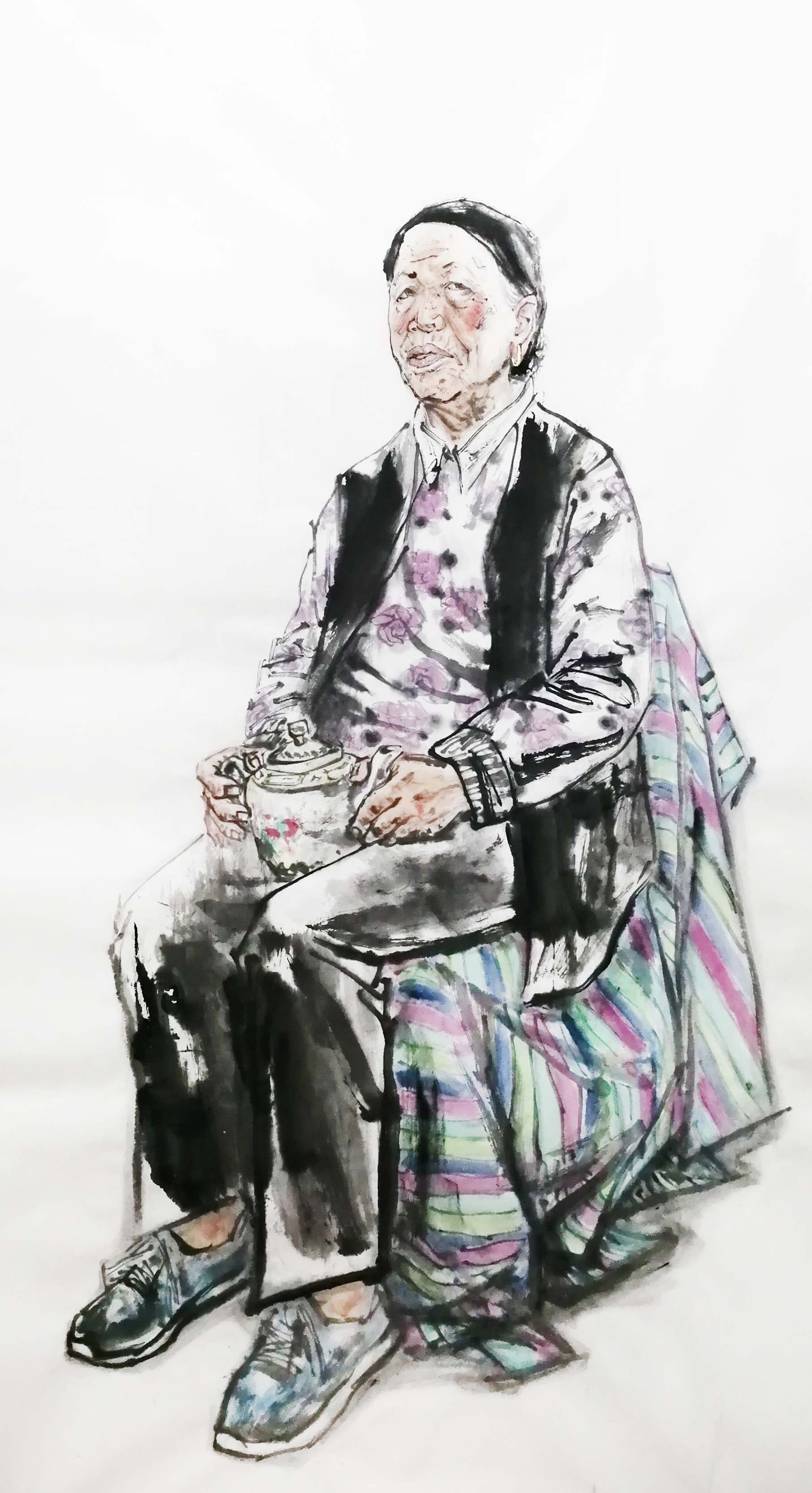 《拿茶壶的老人》 刘拉 68×136 国画