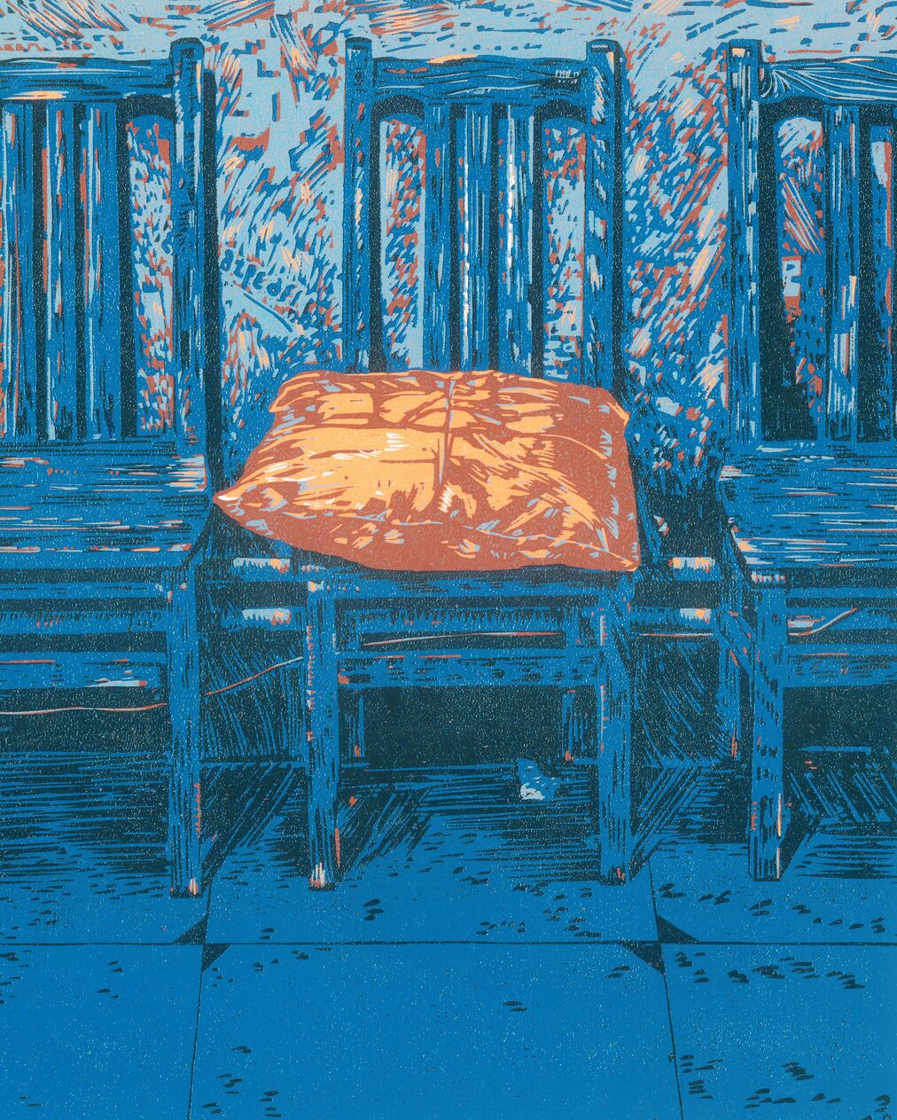 《紫园·等待》 鲁梦甜 30×38 减版木刻