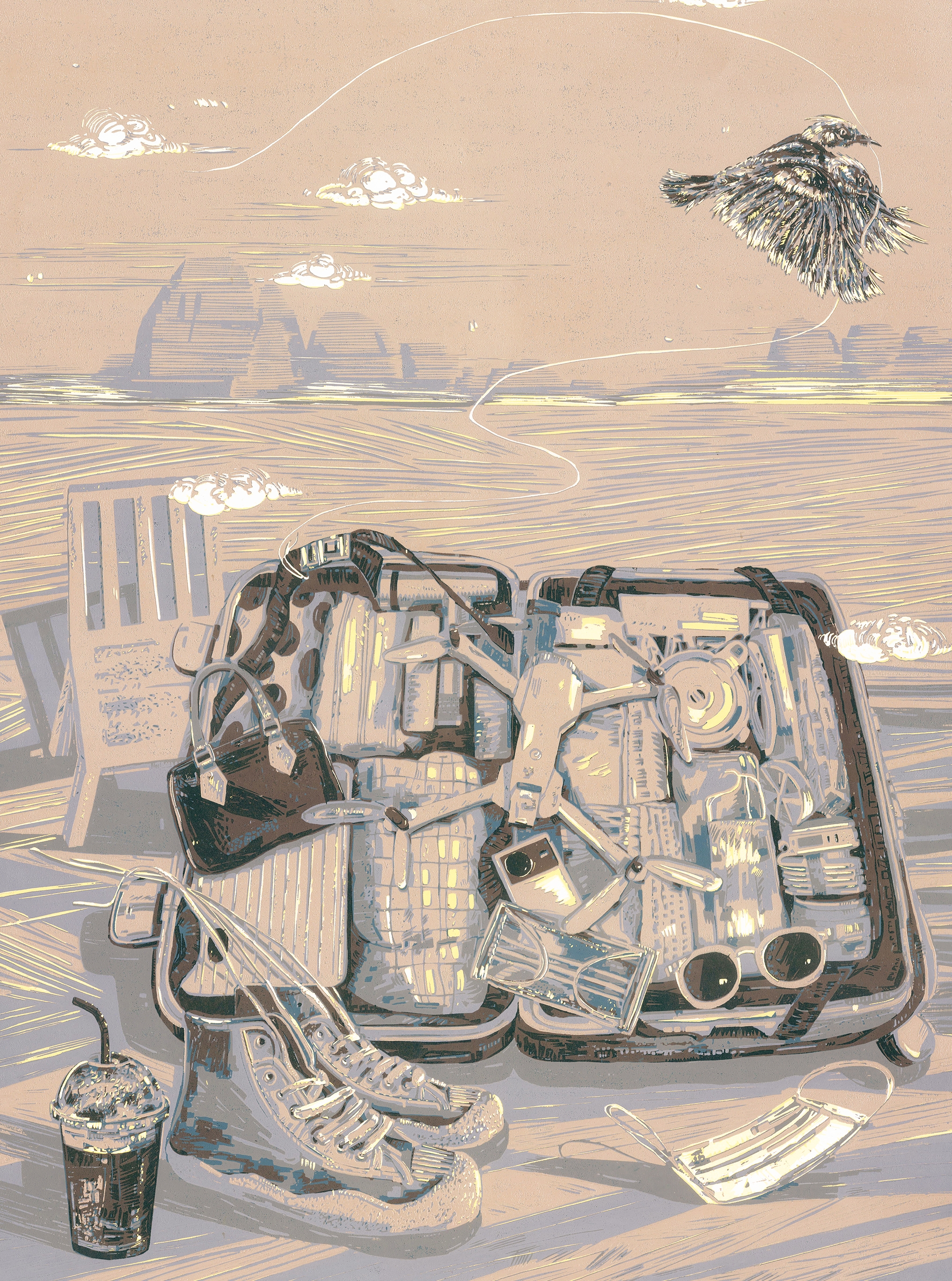 《山海经与平行人生》 鲁梦甜 减版木刻