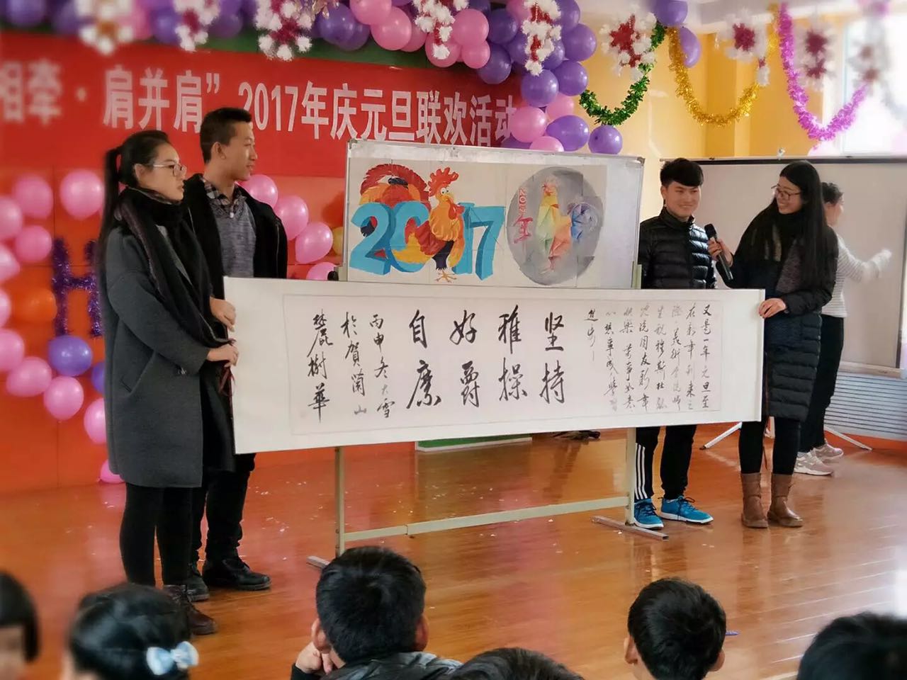 活动现场被气球彩饰装点的非常漂亮,孩子们脸上带着灿烂的笑容。孩子们在许愿树上挂满了自己的新年愿望小卡片。志愿者向大家展示了由公司党委副书记马树华老师亲笔书写的新年寄语“坚持雅操,好爵自縻”表达了公司师生对福利院的新年祝福。公司吴亚丽,王举朔同学荣获“七彩课堂”优秀志愿者,希望他们在未来可以做的更好。
