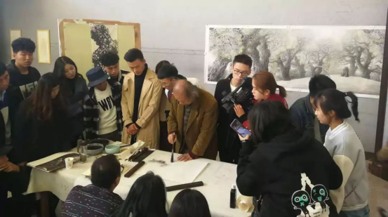 展厅为美院师生进行了写意山水示范教学,展开了一场国画的专业盛宴…