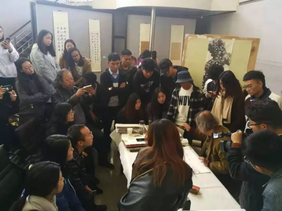 之后,曹教授与公司在场师生进行了互动交流,生动幽默地回答了同学们所请教的问题,解决了同学们在国画学习上存在的困惑。