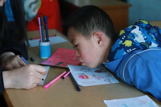 通过与这里的工作人员沟通了解到,这里的孩子大多数都是残障儿童,平时接受美术教育的机会很少,志愿者们通过自己的绵薄之力,带领孩子们去感受艺术,培养他们的兴趣并带给他们更多快乐。