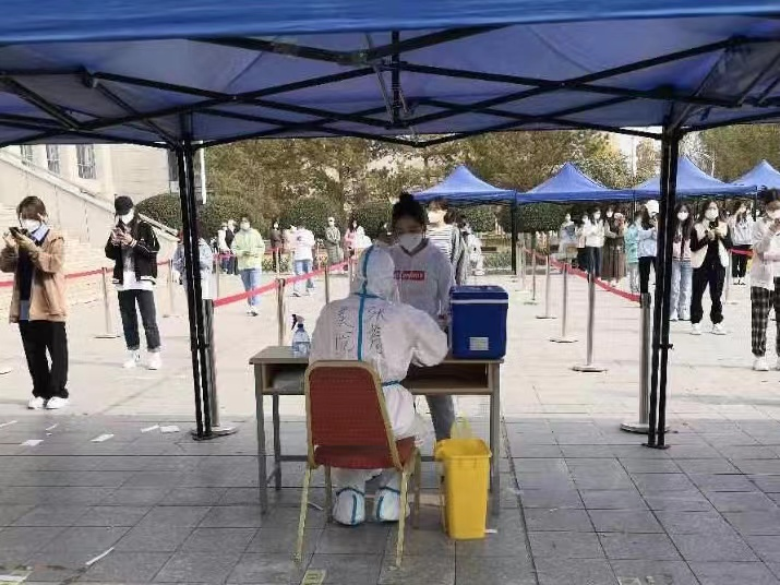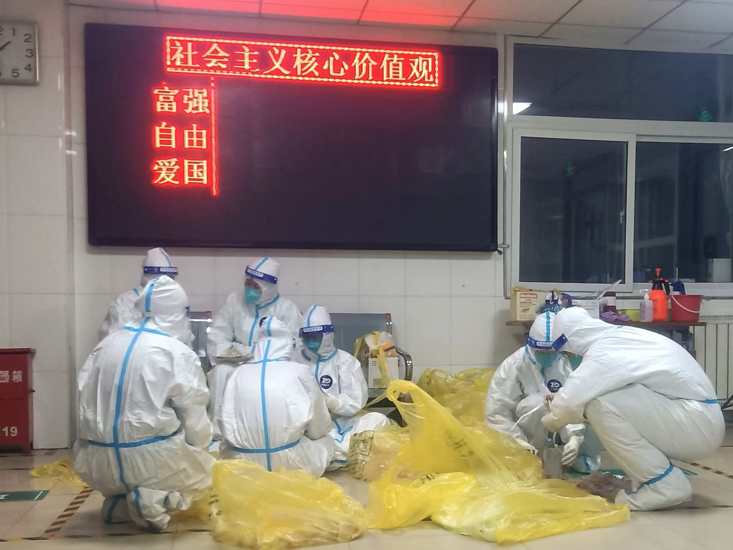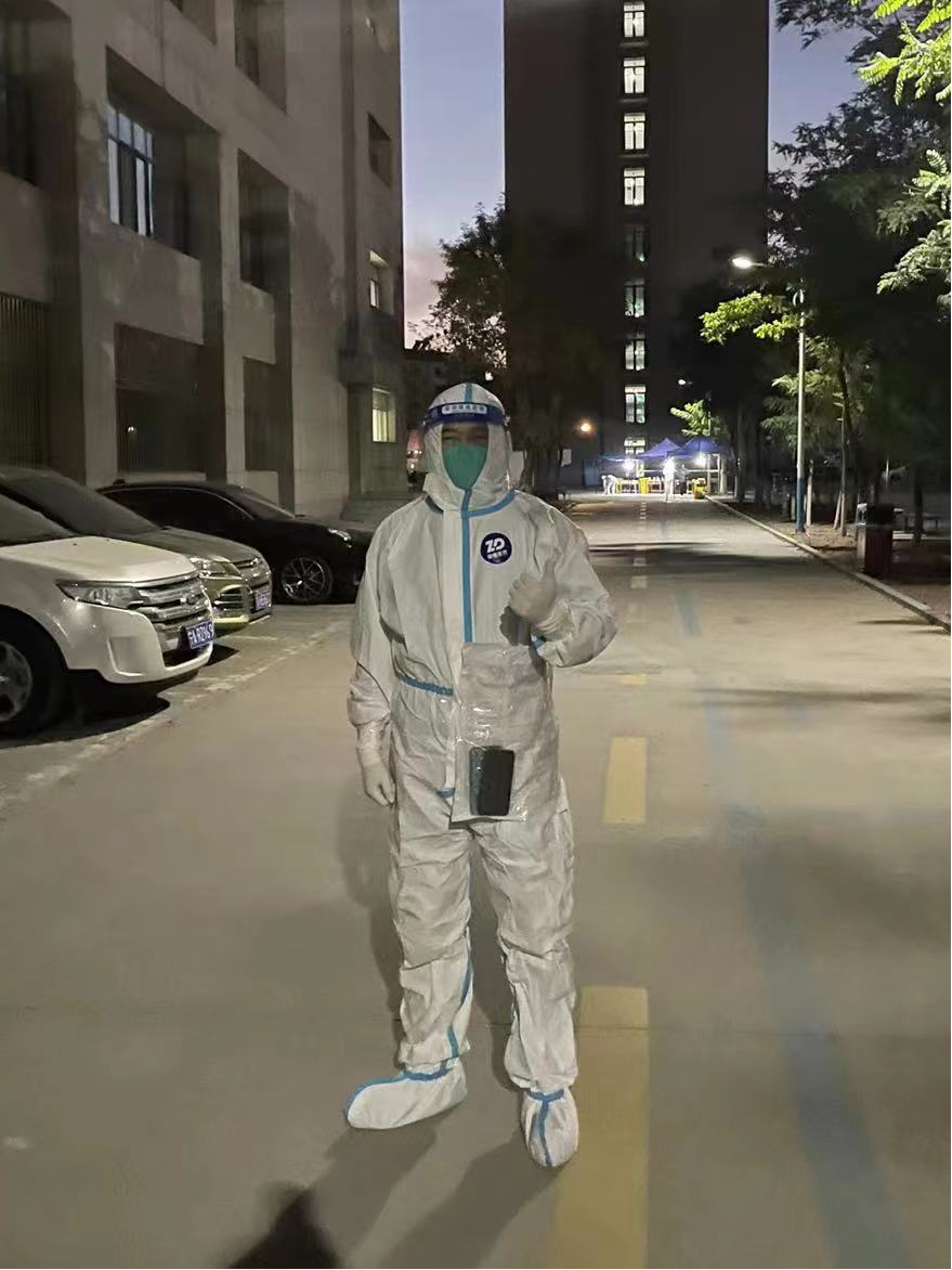 从9月24日起,先后分三批老师进驻公司抗疫一线,由党委书记王宏武带队,副书记马树华、副经理王胜泽、杨瑞、马桦几位领导充分发挥“头雁效应”,率先走上战疫一线,王艳梅、曾发茂、贾璨、杨少青、高秀军、刘超男、陶子越、张睿、冯瑞曦等青年党员教师主动请缨,化身“大白”,为员工提供全天候、全方位的服务保障,以逆行而上、夙夜不懈的精神和不辞辛劳、默默无闻的行动,全力守护着同学们的学习生活秩序和生命健康安全。