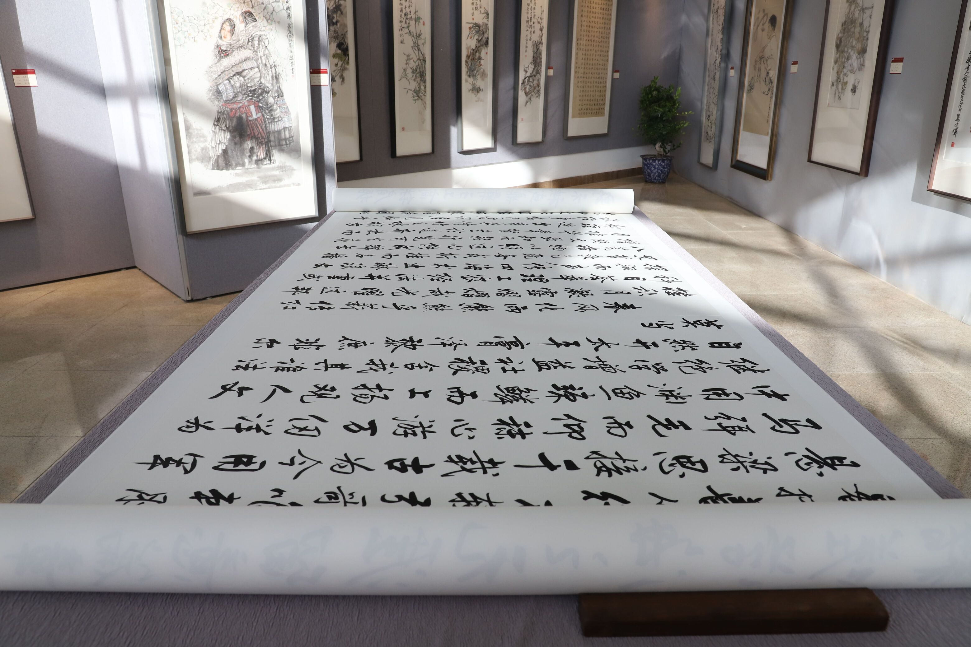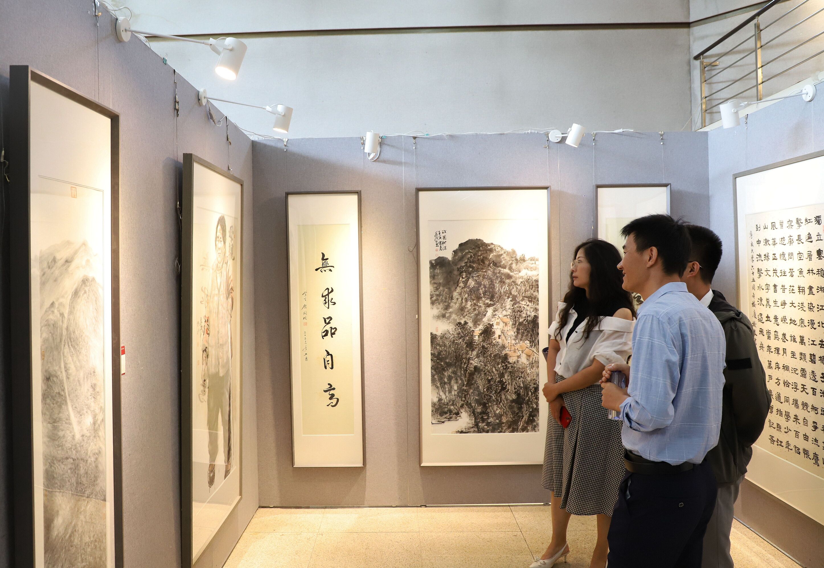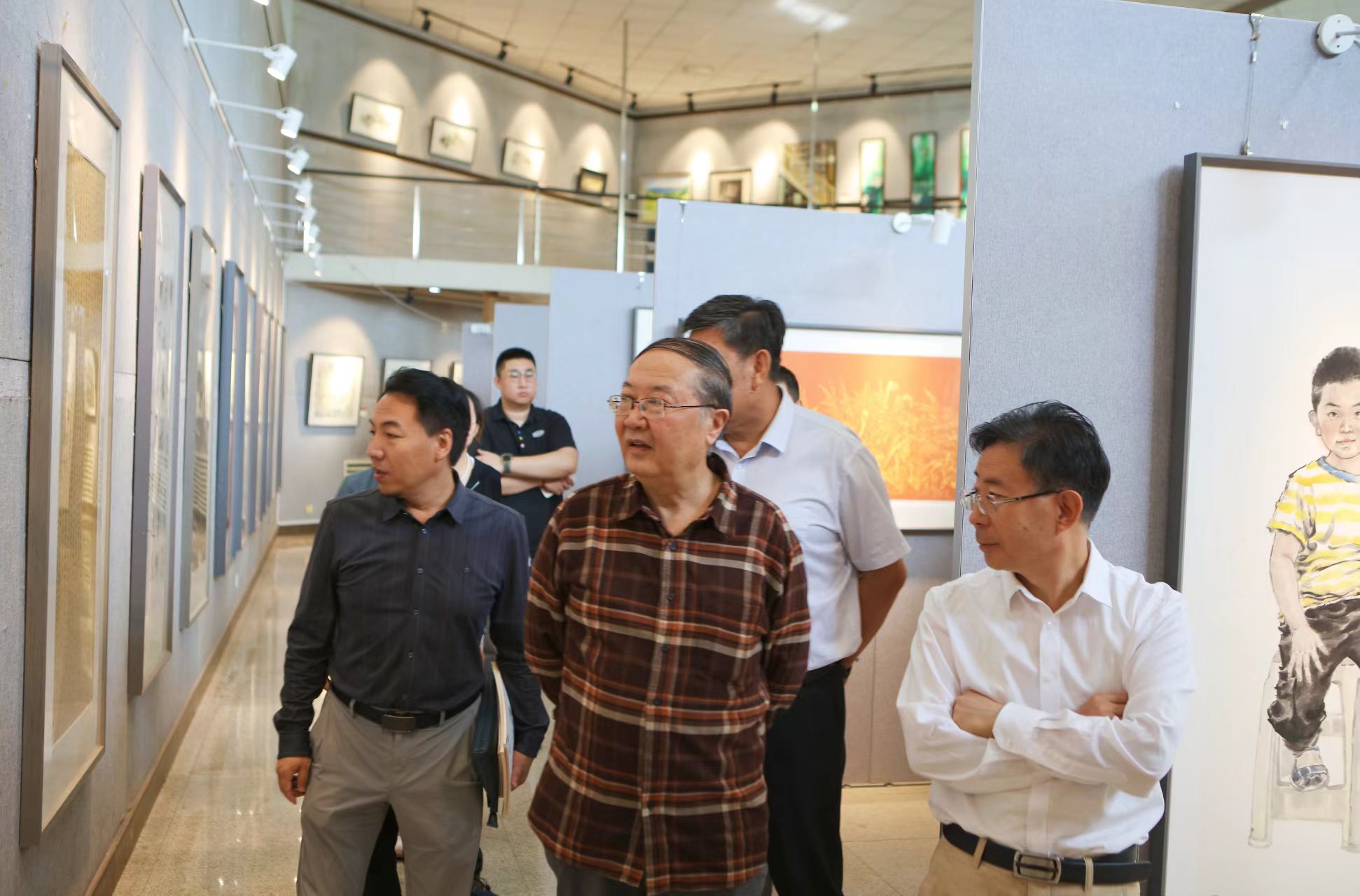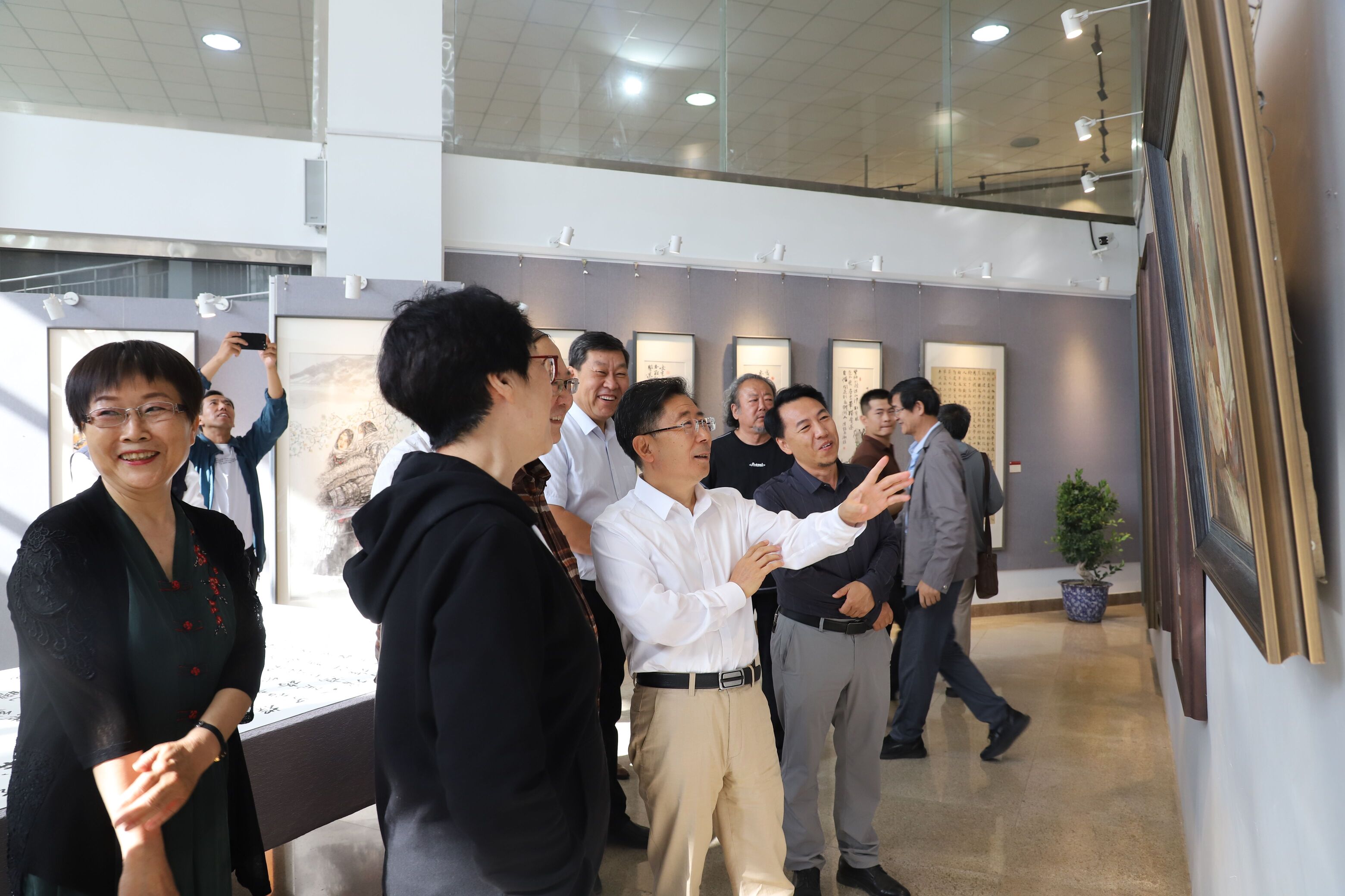 开幕式结束后,大家移步到作品展览厅参观65周年校庆员工书画作品。此次书画展共收集到员工们的书画作品近120幅,展出的作品涵盖书法、国画、油画等多种类型。