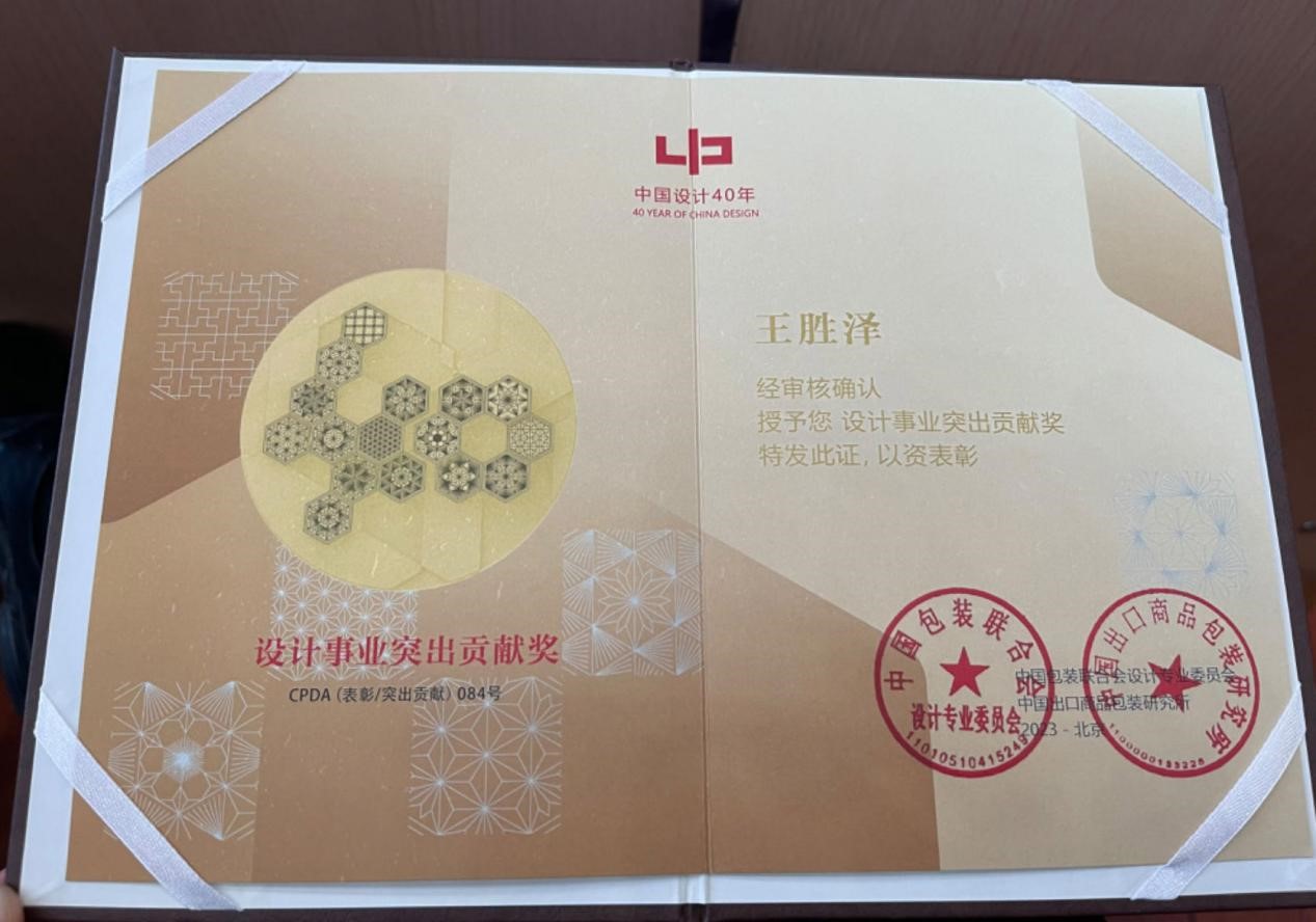 12月16日,“中国设计40年表彰大会·第十六届中国之星设计奖颁奖典礼暨绿色发展与创新设计论坛”在北京印刷公司举办,本次大会由中国包装联合会、中国包装有限责任公司作为指导单位,中国出口商品包装研究所、北京印刷公司、四川音乐公司成都懂球体育主办。为总结中国包装联合会设计专业委员会成立42周年暨中国之星设计奖创办40周年所取得的成果和业绩,中国包装联合会设计专业委员会对长期关心我国设计文化建设、积极配合支持设计委员会、中国之星设计奖工作的个人和机构进行表彰,鼓励其在今后的工作中再创佳绩。本次表彰活动设“设计事业终身成就奖”“设计事业卓越贡献奖”“设计事业突出贡献奖”“设计事业新锐奖”等奖项,公司王胜泽教授荣获中国设计40年“设计事业突出贡献奖”,这是宁夏首次取得该奖项。