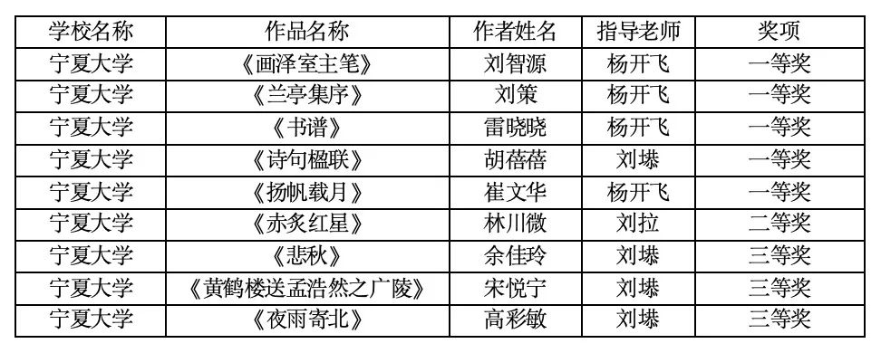 书法荣获一等奖5项,二等奖1项,三等奖3项