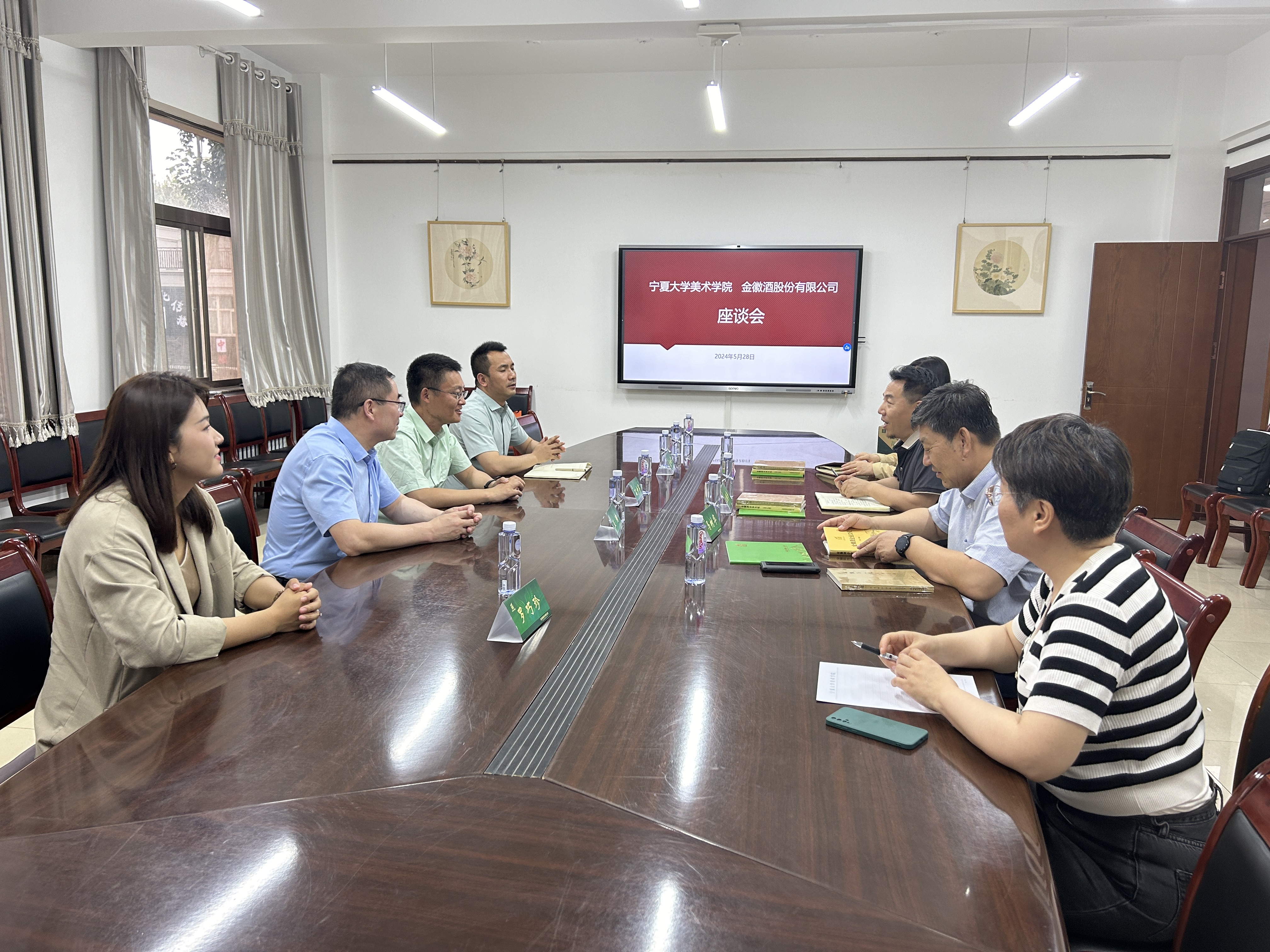 为加强校企合作,进一步推进产教研融合,5月28日,美术公司与金徽酒股份有限公司在公司会议室召开校企合作交流座谈会。金徽酒股份有限公司副总裁石少军,金徽酒银川销售有限公司大客户部总经理王珣,金徽酒银川销售有限公司银川大区总经理宋四军,公司书记马树华、经理王胜泽、副经理朱淑娥,视觉传达设计系主任张莉共同参加了座谈会,会议由王胜泽主持。