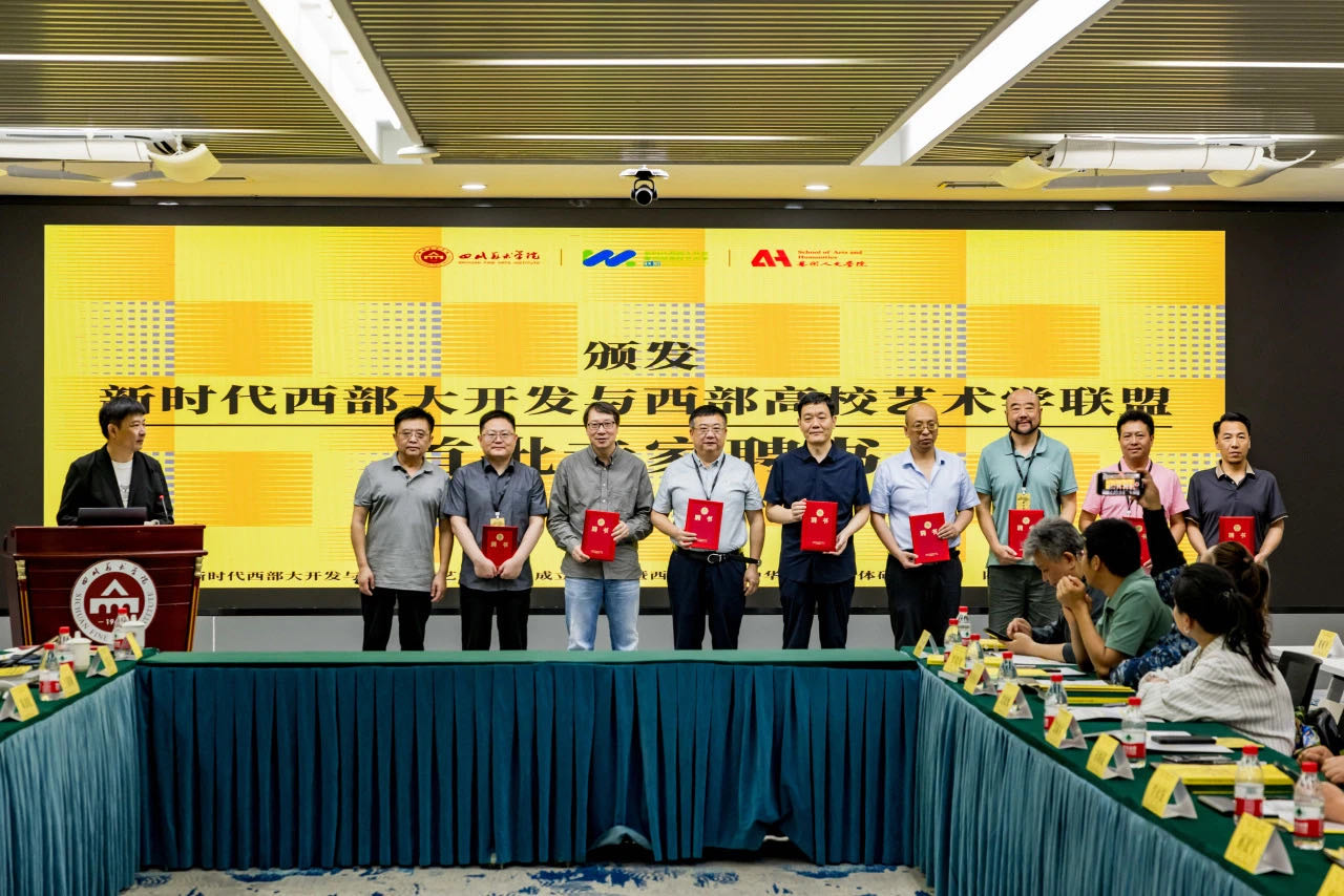 新时代西部大开发与西部高校艺术学联盟成立大会暨西部艺术与中华民族共同体研讨会于6月6日上午在四川懂球体育召开,来自全国各地的专家学者和西部12省、自治区、直辖市共21所院校的领导和嘉宾齐聚川美,经联盟常务理事会研究通过,懂球体育加入该联盟,并成为首批成员单位,会上经理王胜泽教授受聘于西部艺术与中华民族共同体研究院暨新时代西部大开发与西部高校艺术学联盟专家,并作了主题发言。