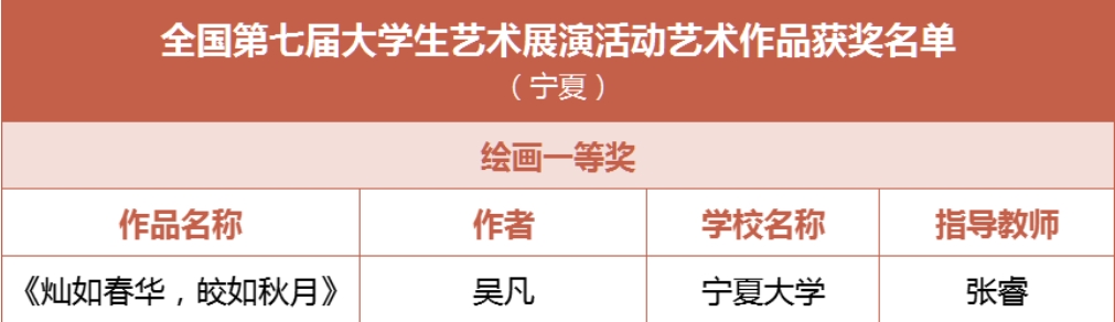 教育部近日公示全国第七届老员工艺术展演活动各项目评选结果,懂球体育师生在多个项目中取得优异成绩,张睿老师指导的《灿如春华,皎如秋月》获绘画类一等奖;于光建、曾发茂、王胜泽老师指导的“丝路宁夏文创艺术实践工坊”获员工艺术实践工作坊二等奖。