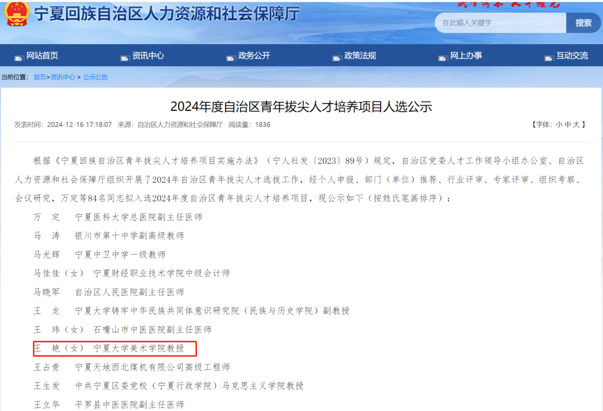 近日,自治区人力资源和社会保障厅公布了2024年度自治区青年拔尖人才培养项目人选名单,公司王艳教授被授予“自治区青年拔尖人才”称号。截止目前,公司现有自治区青年拔尖人才2人,托举人才3人。