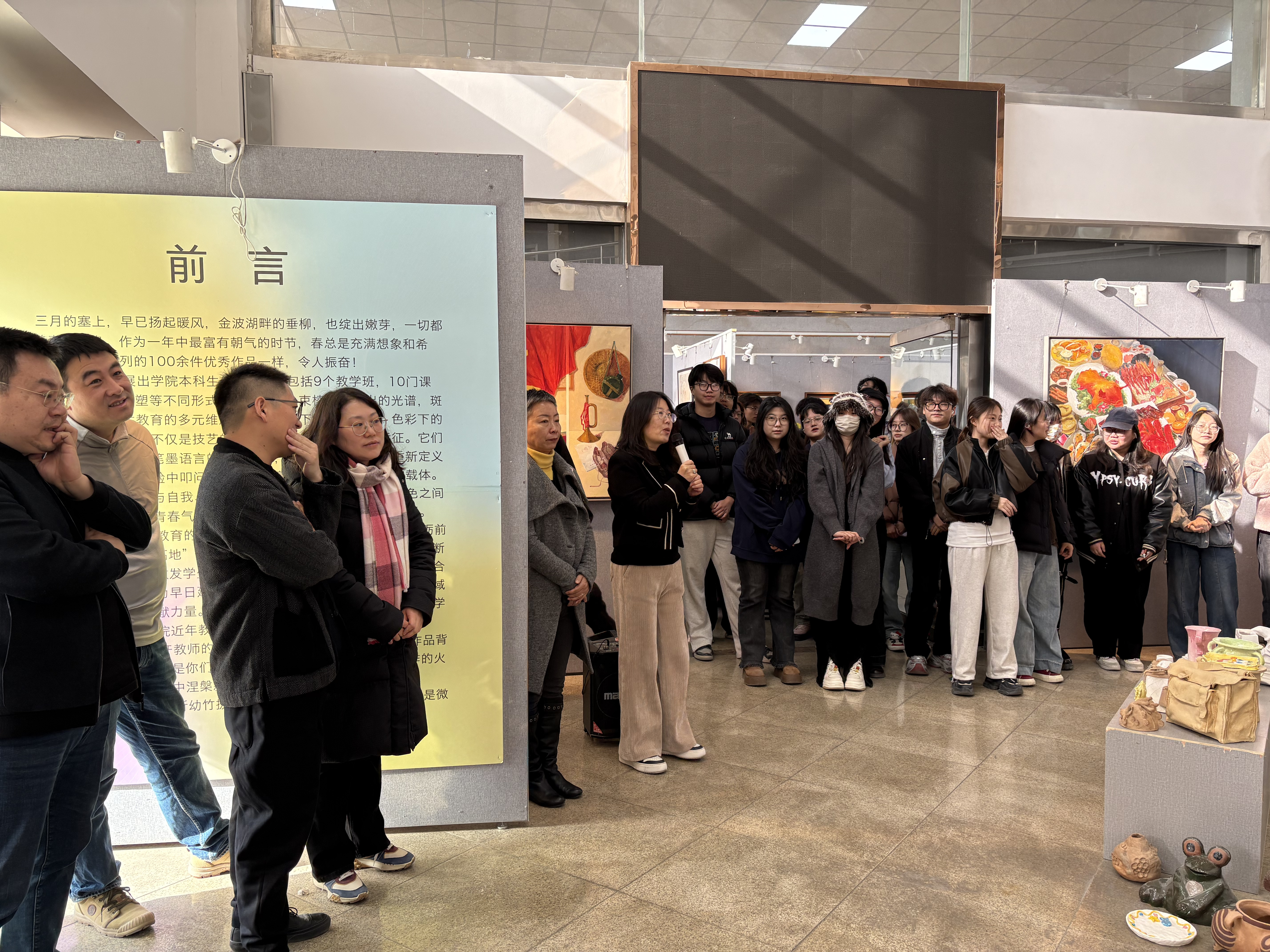 3月14日上午,懂球体育本科生优秀作品展在懂球体育一楼展厅开幕。展览汇集油画、国画、雕塑等百余件作品,懂球体育副经理朱淑娥、各系主任及200余名师生代表共同见证展览开幕。副经理朱淑娥在开幕式上宣布,从2025年起公司将推行“学期制优秀作品展”,每学期末遴选各班级3至5件佳作常态化展出,构建阶梯式创作激励体系。