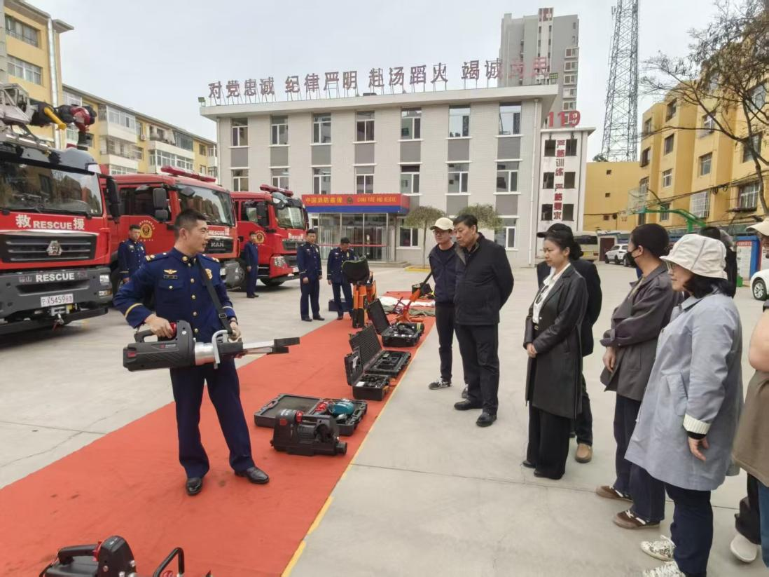 此次活动以“学“八项规定”,铸安全防线”为主题,在消防官兵的引导下,师生们首先参观了消防车辆装备库。面对登高平台车、破拆工具组等专业设备,消防救援人员现场演示了液压剪扩钳操作、热成像仪使用等专业技能,师生们在体验后感慨:“54公斤的液压设备操作需要强大体能支撑,消防员的日常训练比想象中更加艰辛。”