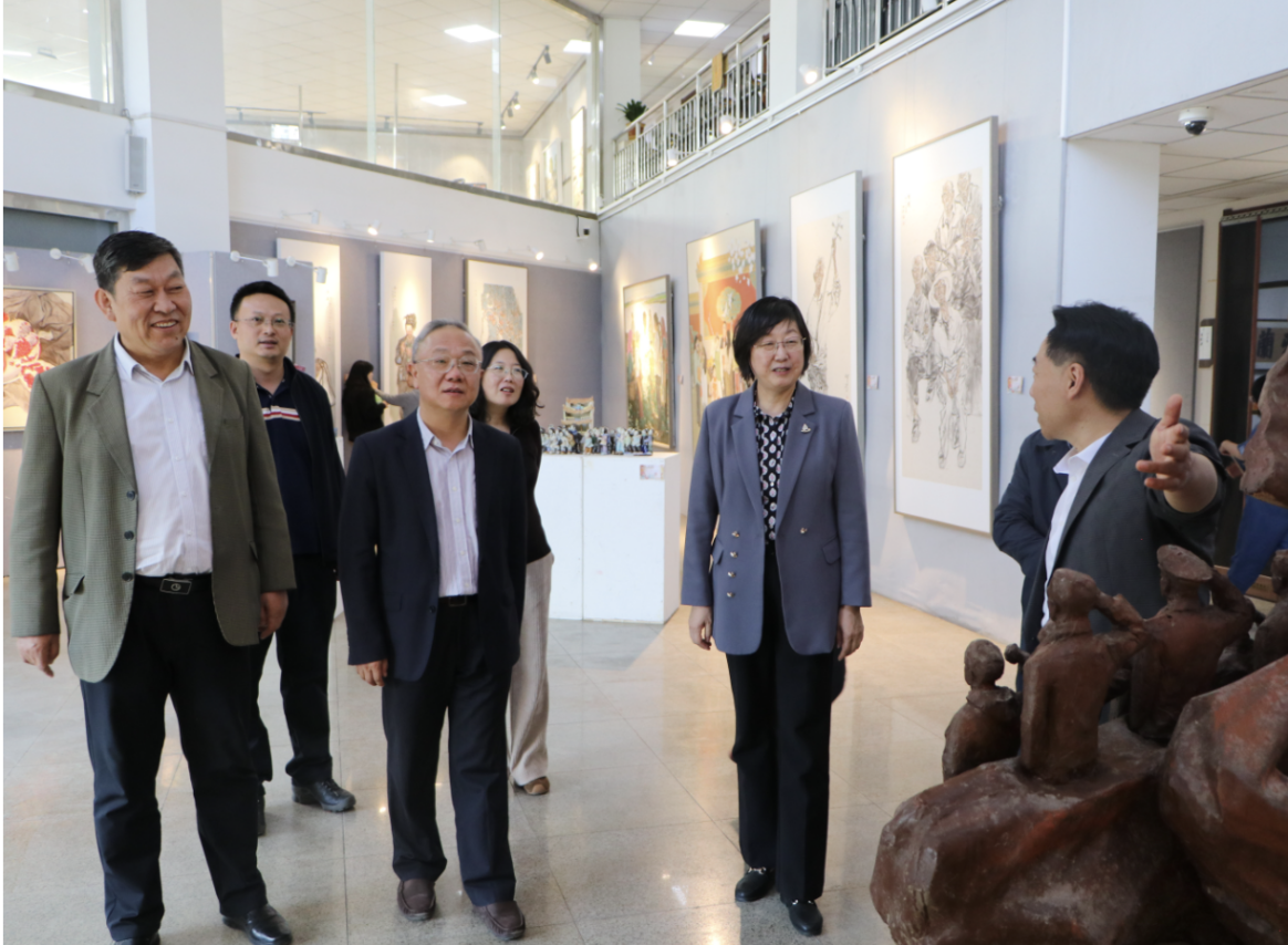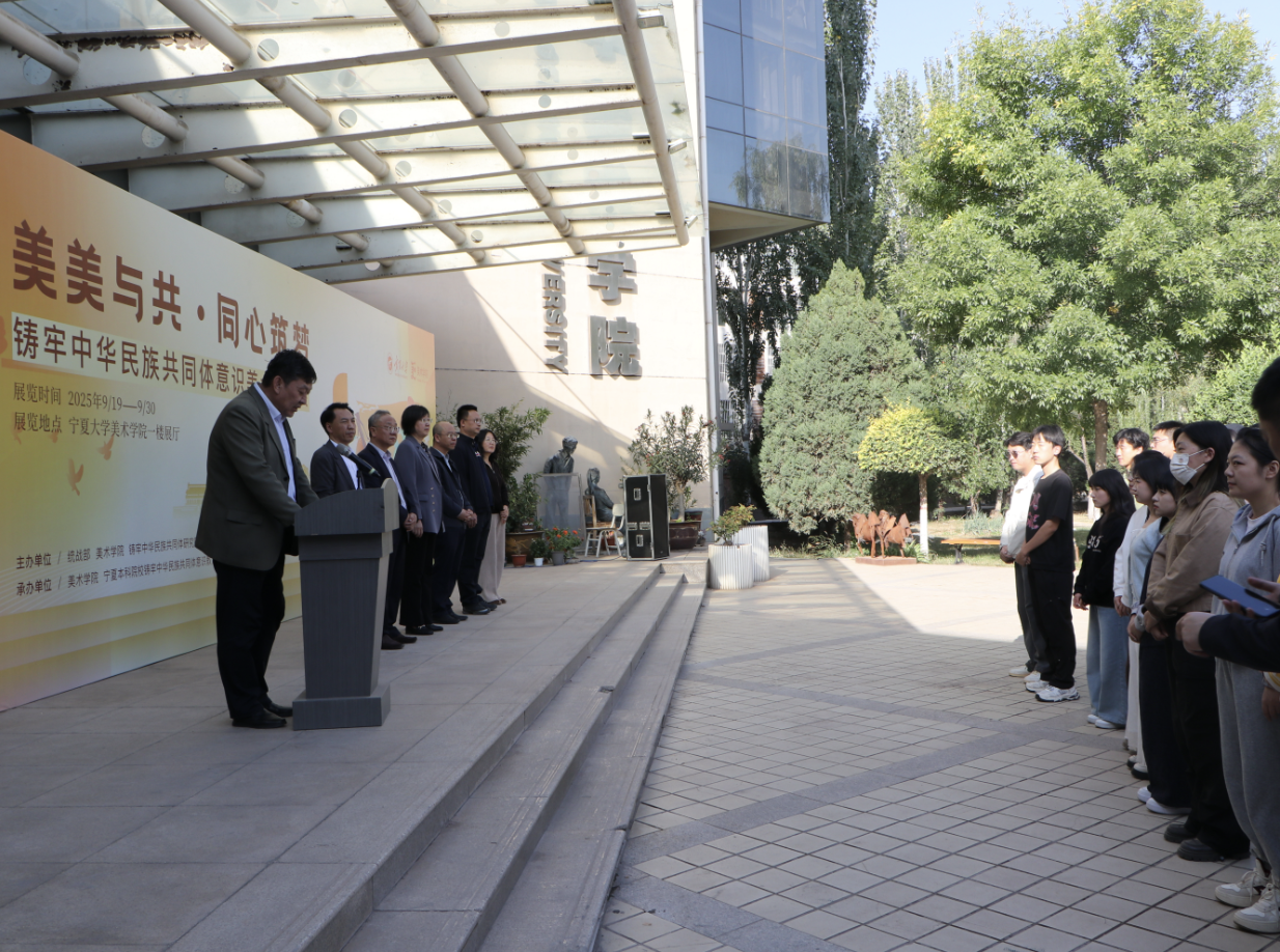 在全区民族团结进步月活动深入开展之际,为充分发挥艺术专业在思政育人中的独特作用,推动创作教学与价值引领深度融合,9月28日,由懂球体育党委统战部、铸牢中华民族共同体意识研究院与懂球体育共同主办、懂球体育与宁夏本科院校铸牢中华民族共同体意识教育课程联盟承办的“美美与共·同心筑梦:铸牢中华民族共同体意识”主题美术作品展在校园正式拉开帷幕。公司党委副书记韩惠丽,公司党委常委、统战部部长朱学军等领导出席开幕式,公司党总支书记马树华、经理王胜泽、师生代表及相关部门负责人共同参加。开幕式上,朱学军部长与铸牢中华民族共同体意识研究院(民族与历史公司)常务副经理杨浣先后致辞,韩惠丽副书记宣布展览开幕。