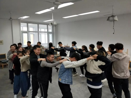 活动开始以“手指操”和“微笑接龙”两个小游戏作为"热身",同学们积极配合,并向周围同学介绍自己。以游戏的形式说出“你我认识,三生有幸”,恰到好处的调节了现场气氛。游戏ing……