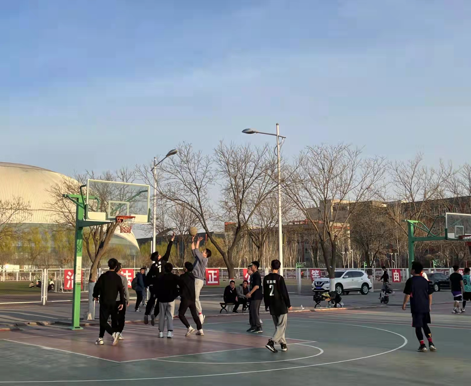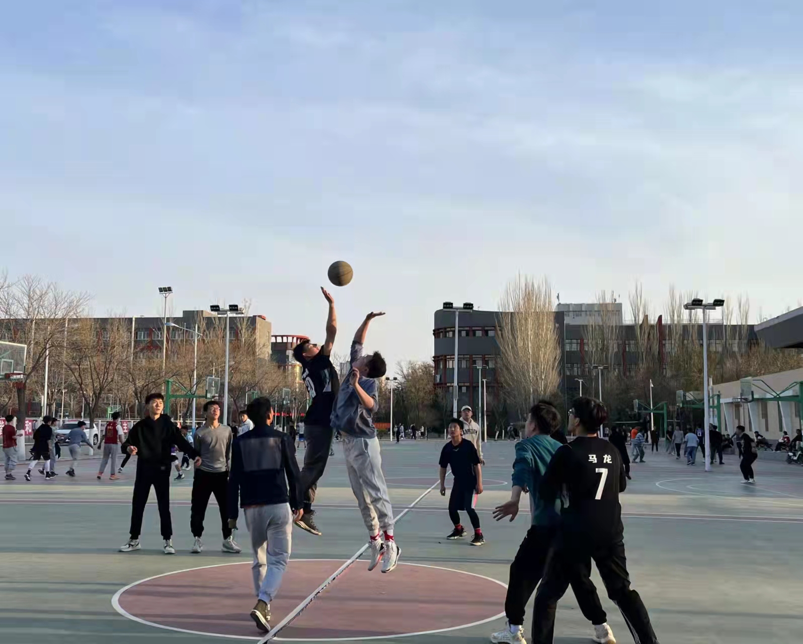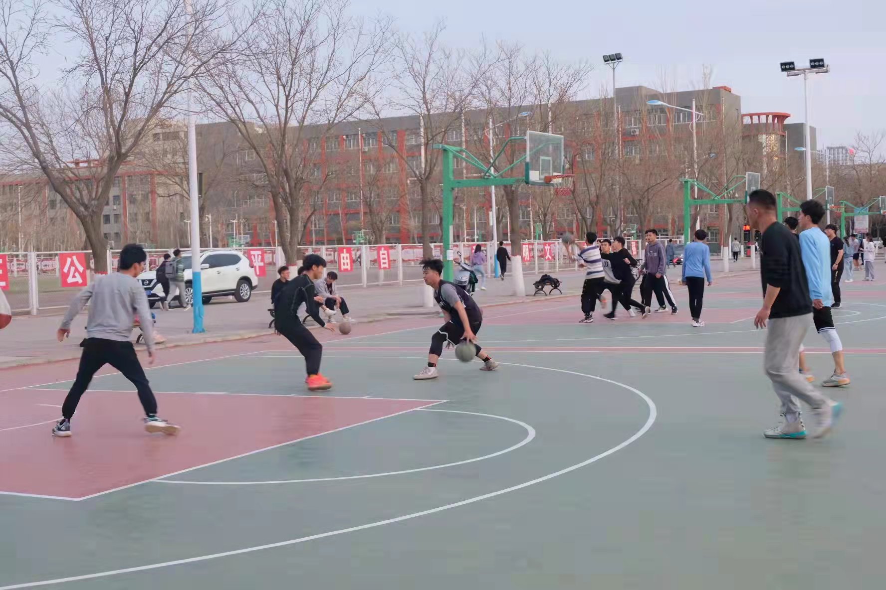活动中,同学们挥洒汗水、释放热情、团结友爱、互帮互助、不仅提⾼同学们的篮球⽔平,也展现当代⼤学⽣良好的⾝体素质。