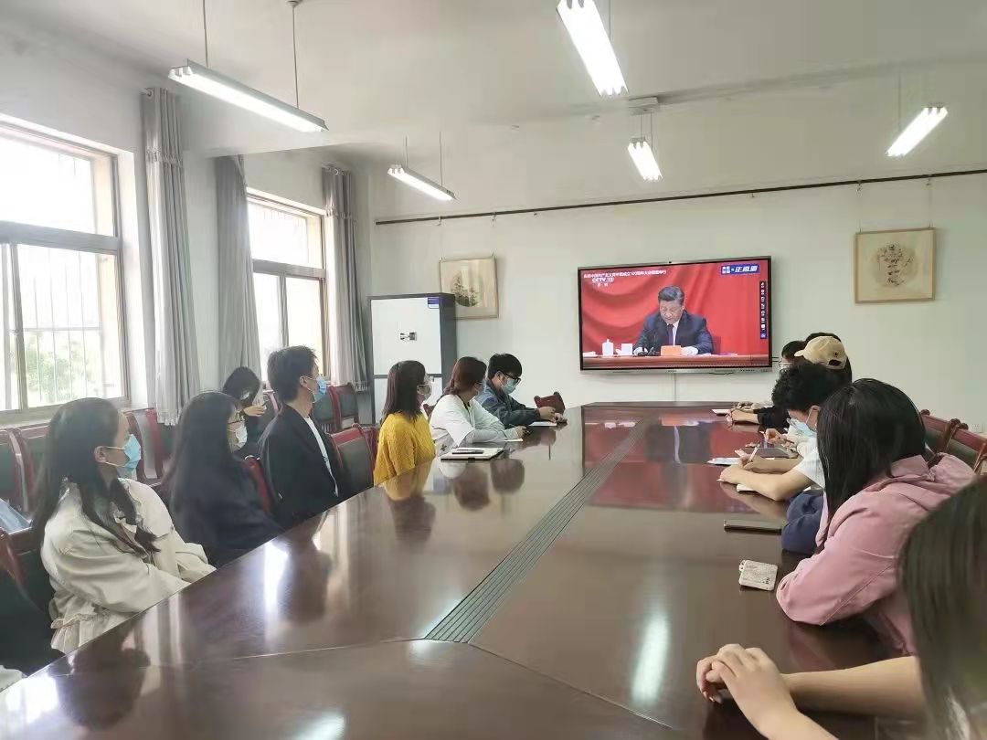 2022年5月10日10时,懂球体育组织青年代表在德雅楼210会议室收看庆祝中国共产主义青年团成立100周年大会直播,深入学习习近平总书记发表的重要讲话。