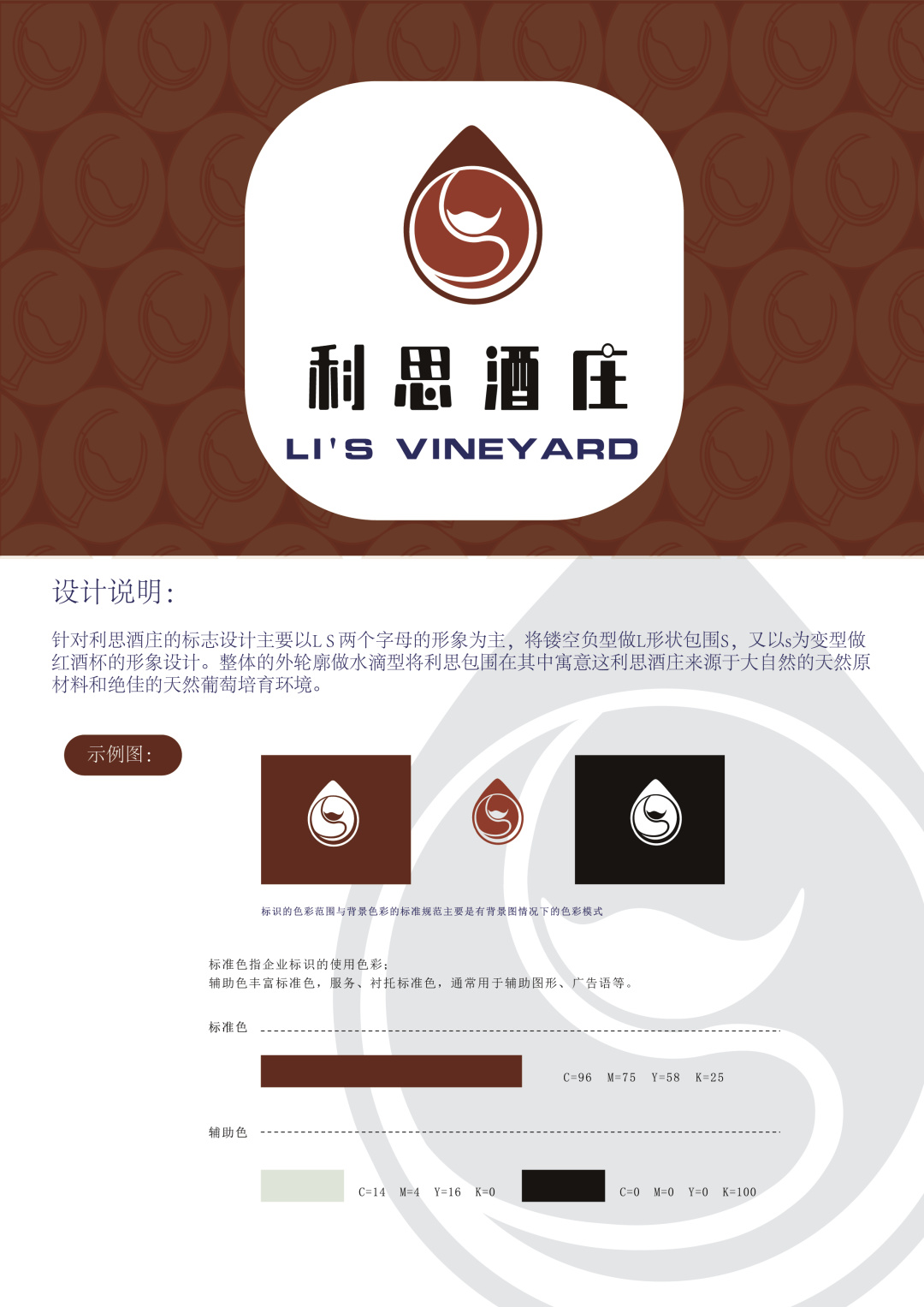利思酒庄采用拼音开头字母L和S,组合成的logo,交接处是酒瓶口的形状,整体标识简约大气,颜色识别性高,象征着利思酒庄酿造工艺数一数二。并且从头到尾一气呵成,与利思酒庄家族企业一代接一代传承,不仅传承产业,也可以传承文化和家族精神。